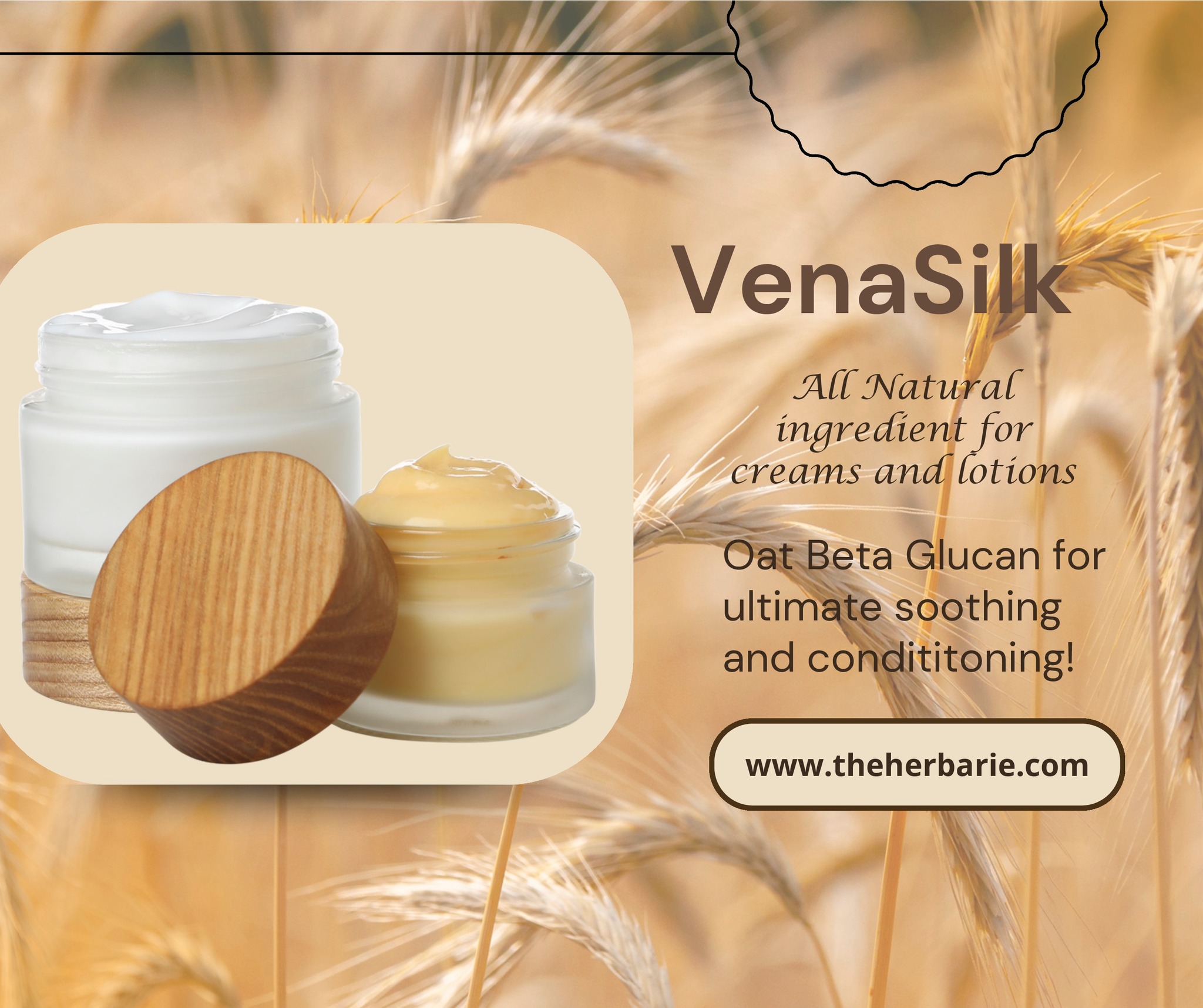 VenaSilk is 30 percent oat beta glucan and is the ultimate in skin conditioning. VenaSilk, Natramulse, Shea Butter and EVCO make such a lovely cream for soothing and smoothing dry skin. Try it!