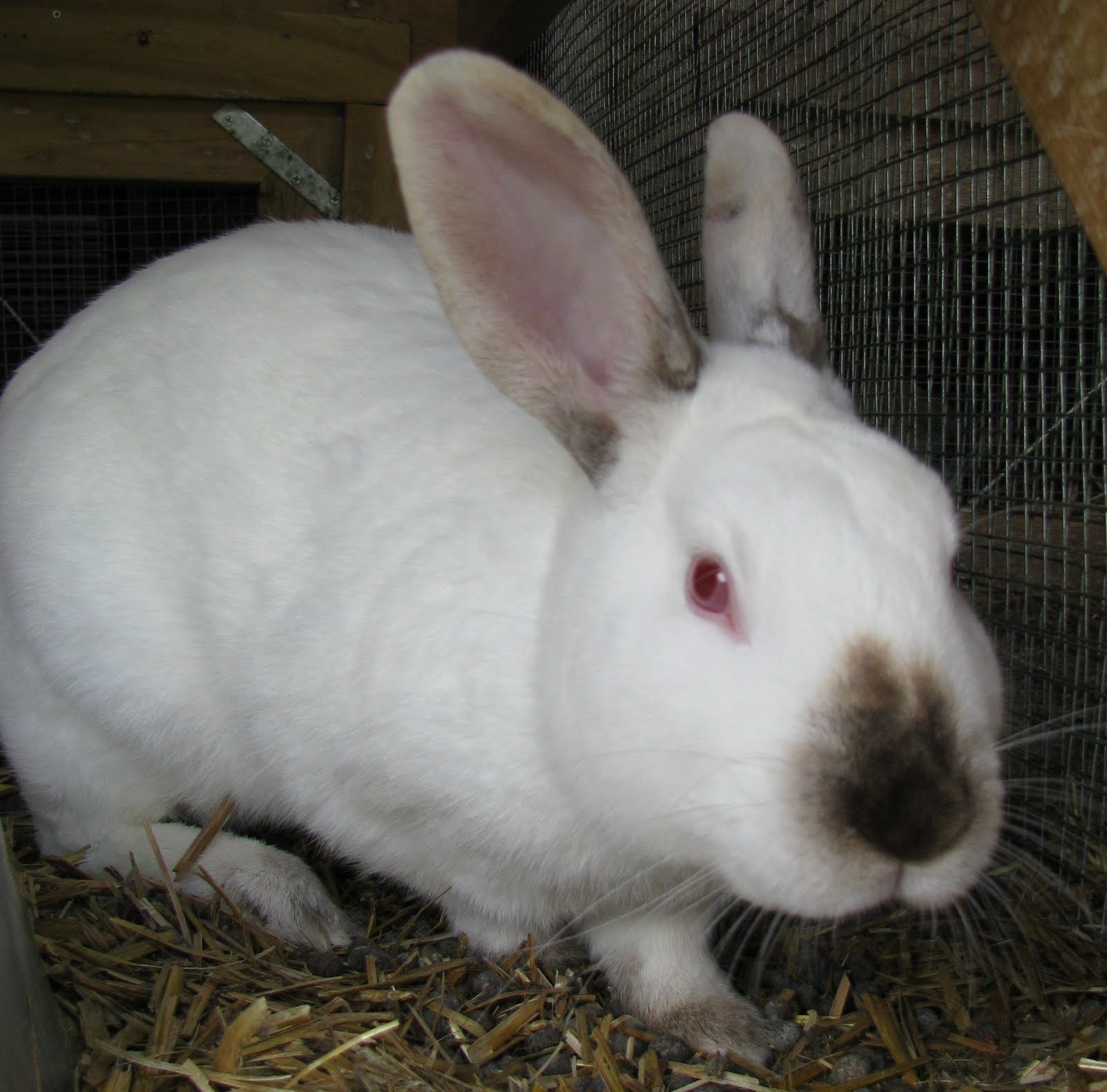 Last Fall, we had another unusual visitor to our garden – a white rabbit! We have no idea where he came from, but he seemed to want to stay close to Tinkerbell, our Dutch Belted bunny who lives under the shelter of the old smoke house. For several weeks, the white rabbit hopped all around the garden, going between Tinkerbell’s cage and the warehouse, but he would always spend the night near Tinkerbell. I began to fear for his safety since I knew he would be very easy prey for the many predators that live in the wild.