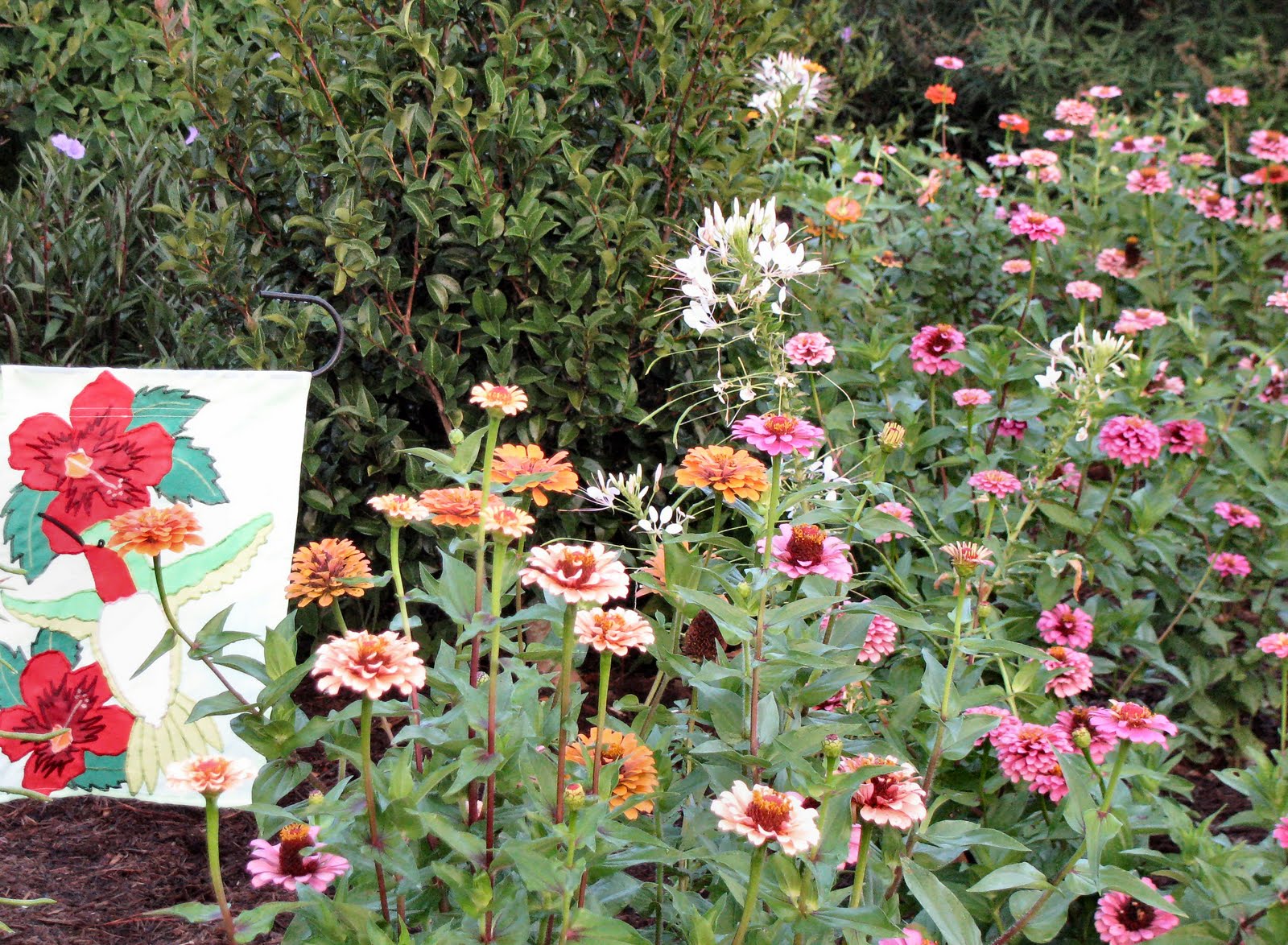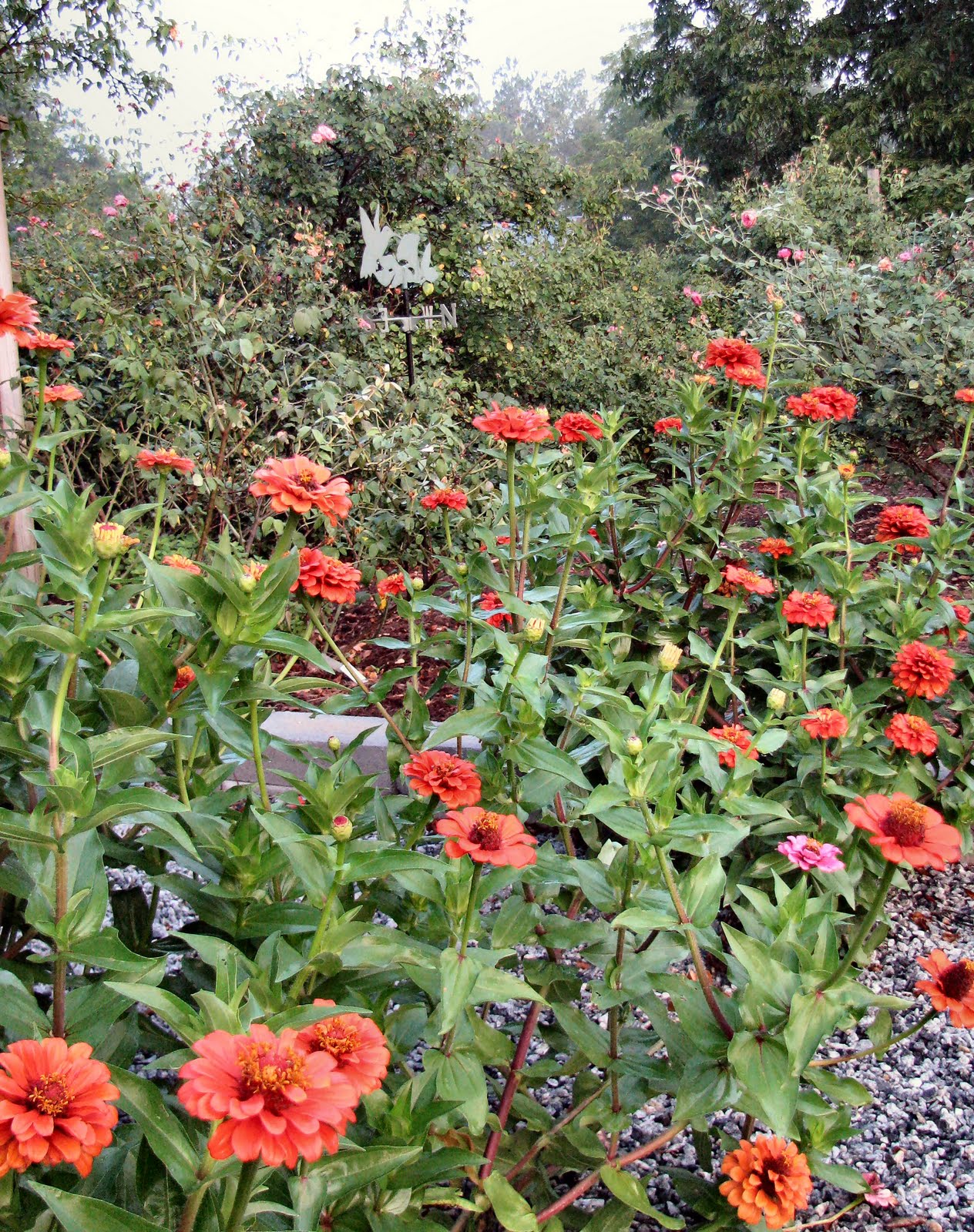 The sunflowers and zinnias have sown themselves in the gardens and are now everywhere. Zinnias and Sunflowers love hot summertime and seem to exude joyfulness!