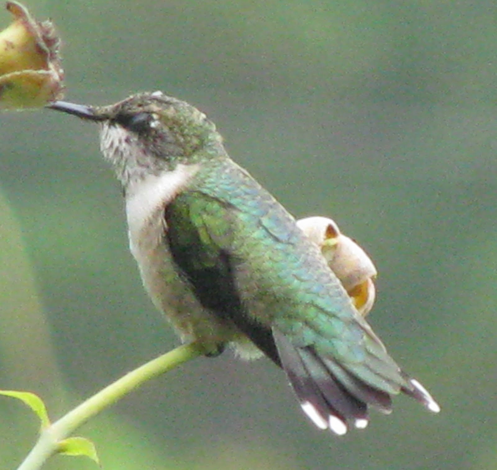 The hummers are wide awake at 6:30am – chirping and zooming around from flower to flower and the many sugar water feeders in the gardens.